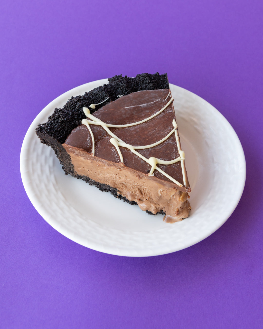 This icebox pie features an ice cream-y chocolate filling with swirls of salty peanut butter and an Oreo crust. It's basically the best candy/ice cream/midnight snack turned into a frozen pie!